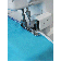 Feed the tape into the slot at the front of the presser foot, and adjust the guide according to the width of the tape. Use this presser foot to insert tape along shoulder seams in order to reinforce them.