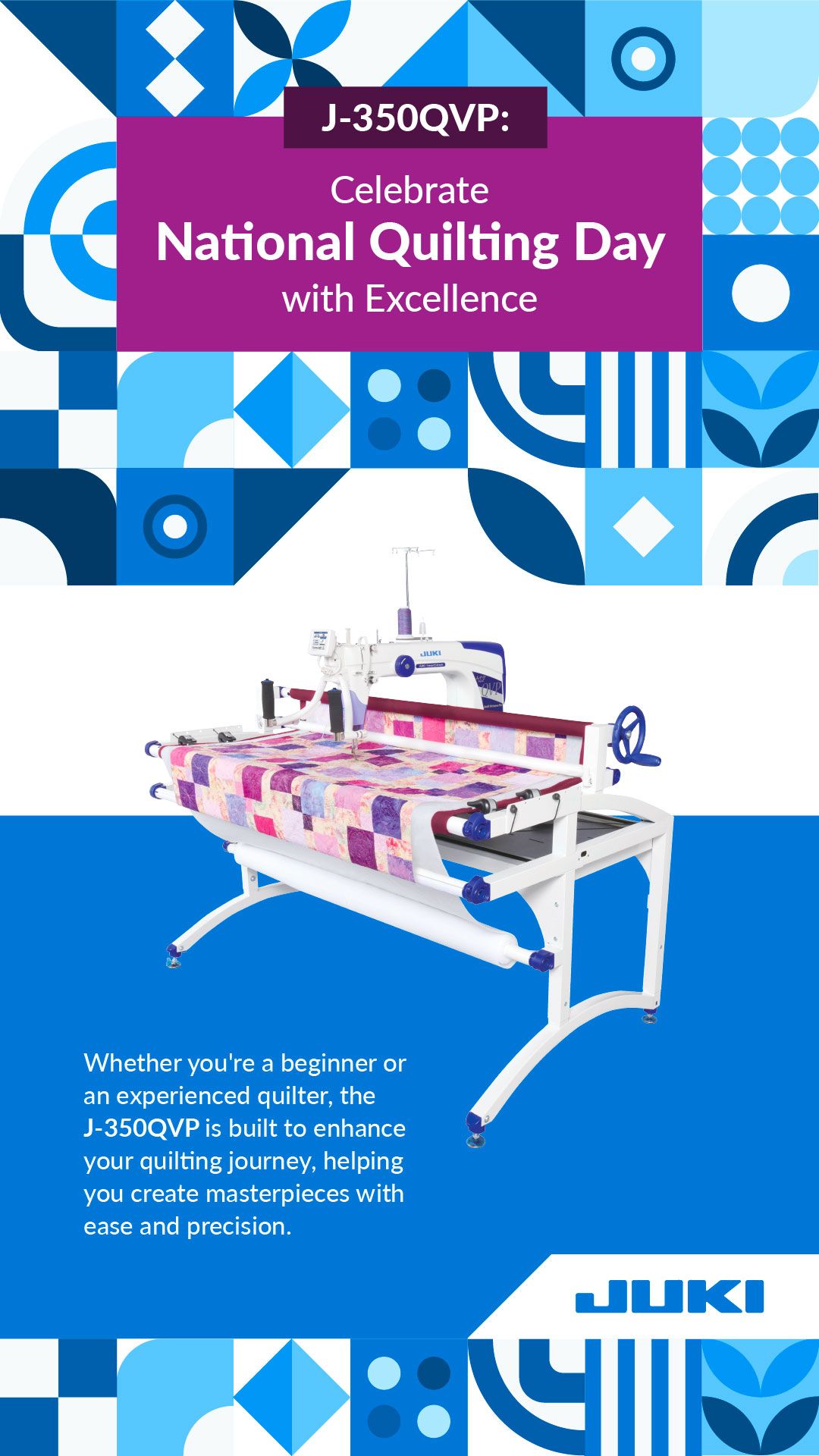 Celebrate National Quilting Month with JUKI and learn more about our wide selection of quilting machines!
